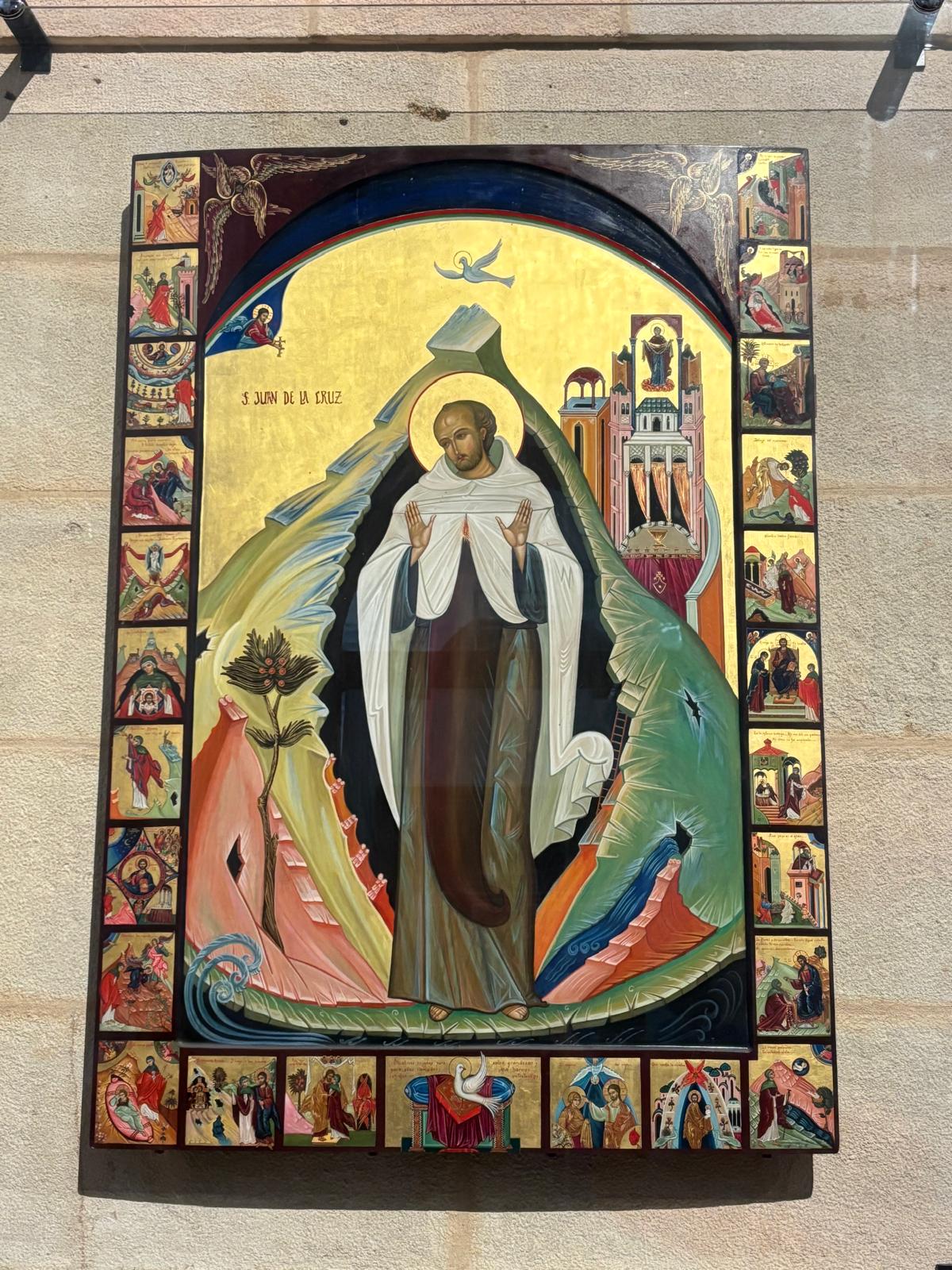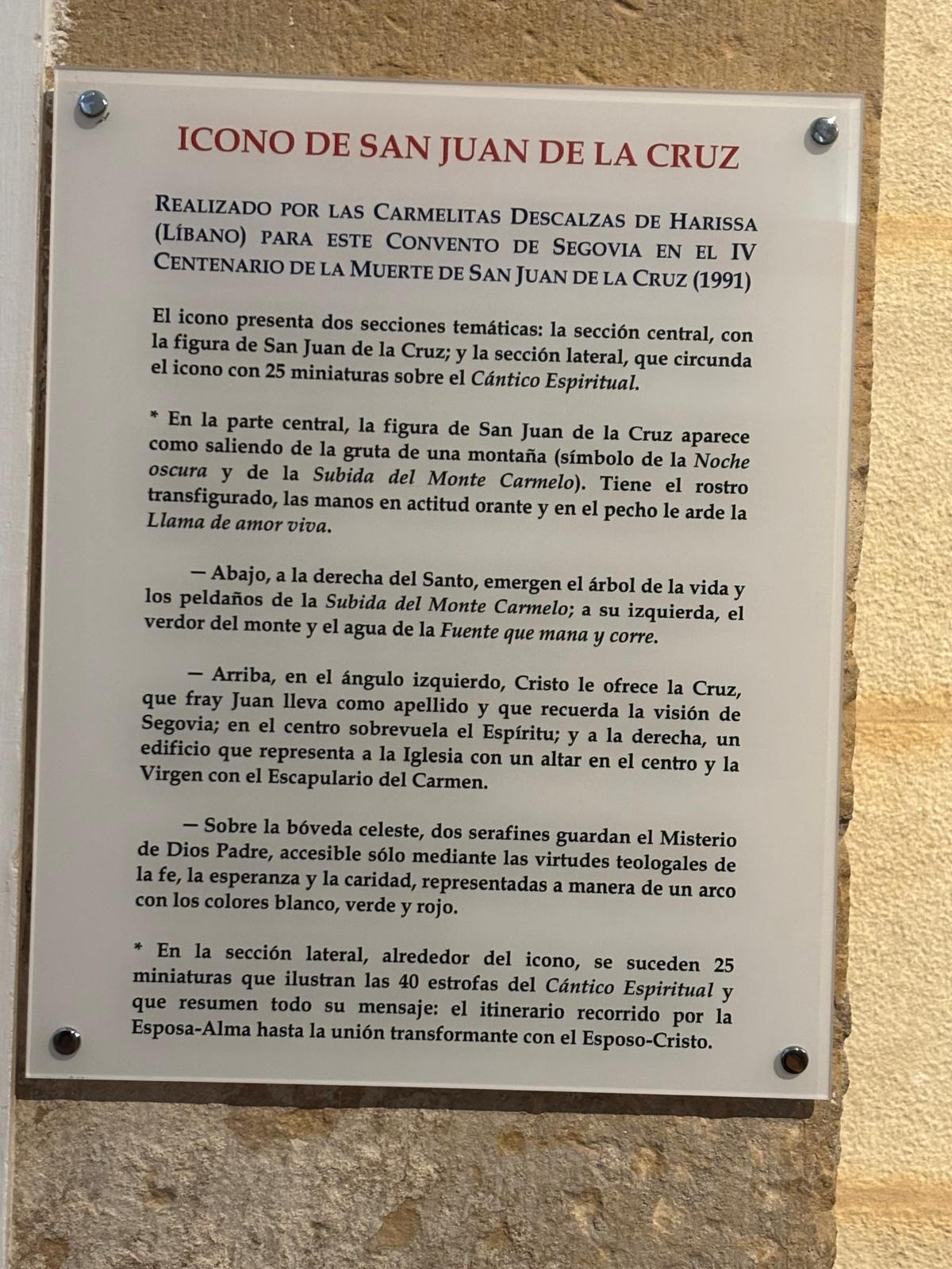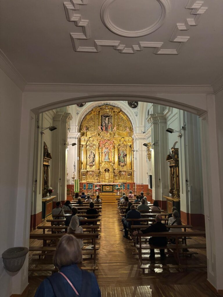 We drove to Segovia! After some time for coffee, we walked to the Carmelite monastery of St Joseph, founded by St Teresa herself in 1574. Upon entering she lapel we encountered the dazzling gold chapel. The foundation at Segovia was made at God’s directives. Teresa would write, “I was here one day in prayer, our Lord said to me, make a foundation here in Segovia.” This was boldly escribed on a plaque on the way to the monastery.