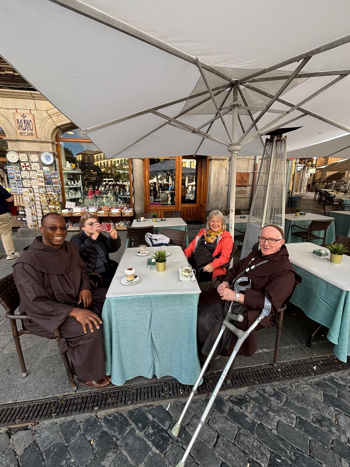 25 pilgrims from the UK, USA, Ireland, Scotland gathered at the Madrid airport and were conveyed in a coach to our destination – Hotel Zentral, Toledo. We had some time to settle in and then walked for about 25 minutes through the hilly routes to the Discalced Carmelite Friars’ monastery for Mass.