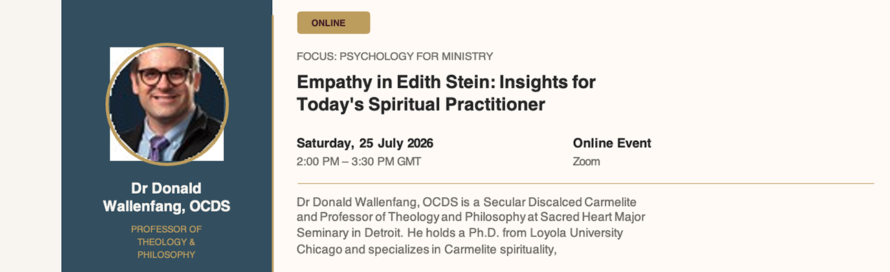 If you would like to register for the ENRICHING MINISTRY DAY on Empathy in Edith Stein: Insights for Today’s Spiritual Practitioner you can do so by simply clicking add to basket, then view basket and following the onscreen instructions.