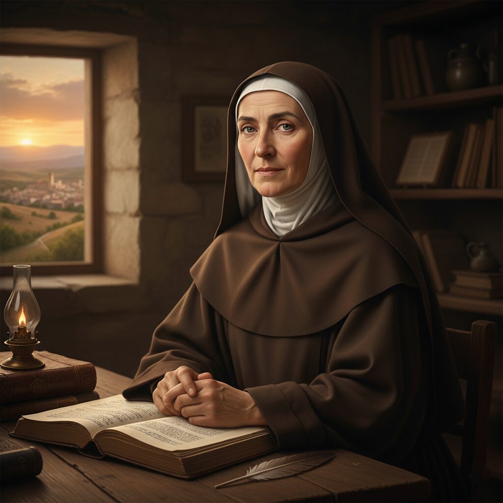 A final aspect of Teresa’s courage that it will be well for us to reflect on is her joy. Despite chronic illness, despite opposition and misunderstanding, despite the genuine hardships of founding monasteries across Spain, Teresa maintained what can only be called a holy playfulness. She had a great sense of humour, once exclaiming, “From silly devotions and sour-faced saints, good Lord, deliver us!” And who can forget the spontaneous prayer that emerged from her lips when she fell into the mud while travelling in terrible weather: “Lord, if this is how you treat your friends… it’s no wonder you have so few of them!”? How real was her friendship with the Lord! Teresa’s joy is itself a form of courage – the refusal to allow difficulty to harden us, the choice to trust that God’s love is more fundamental than any suffering we encounter. We can just imagine her – passionate in her love for God but never grim. “Rejoice in the Lord always; again I will say, rejoice.” (Phil 4:4)